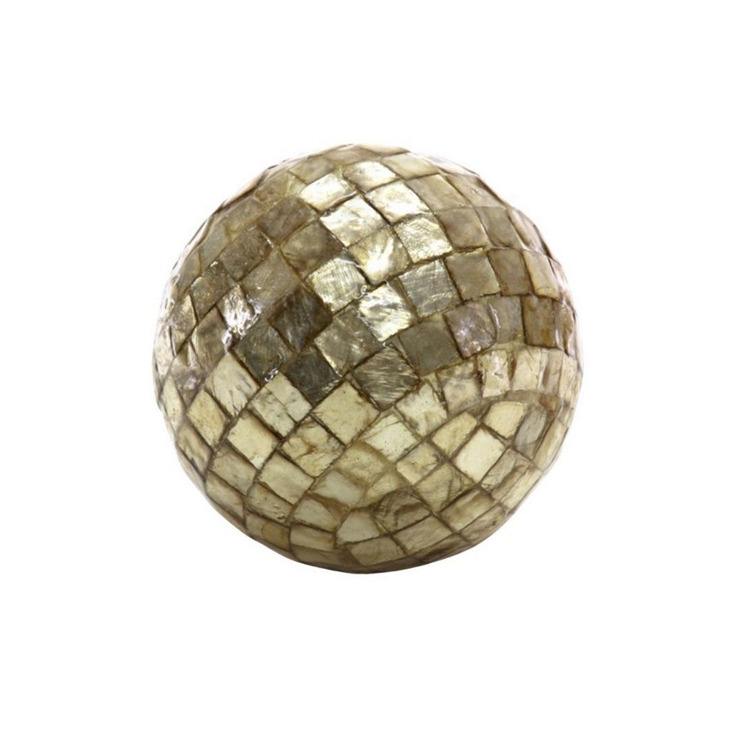 “Bola com Mosaico Quadrado Dourado 7,5”, é uma peça charmosa, confeccionada artesanalmente em escama de madrepérola quadrada e dourada com fino acabamento.