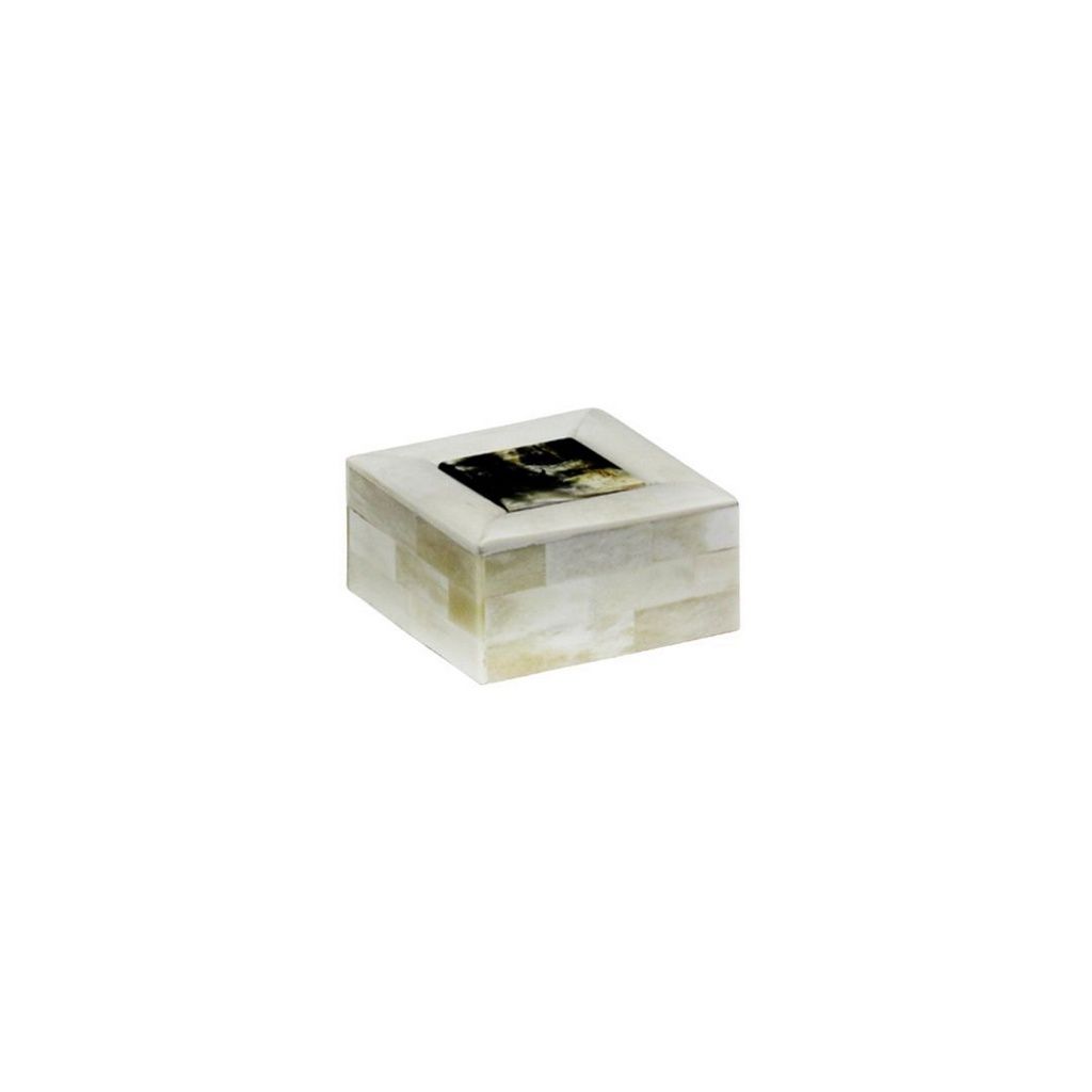 “Caixa Porta Joias em Ossos Tampa com Detalhe P”, é uma peça decorativa linda, delicada e construída com tiras de ossos de búfalo nas laterais e a tampa tem uma pintura artesanal fazendo uma composição perfeita onde é possível notar a combinação harmônica presente na peça, uma junção de brilho e simetria. O artesão indiano consegue passar toda a bagagem técnica com muita sutileza, charme e tornando a peça única.
