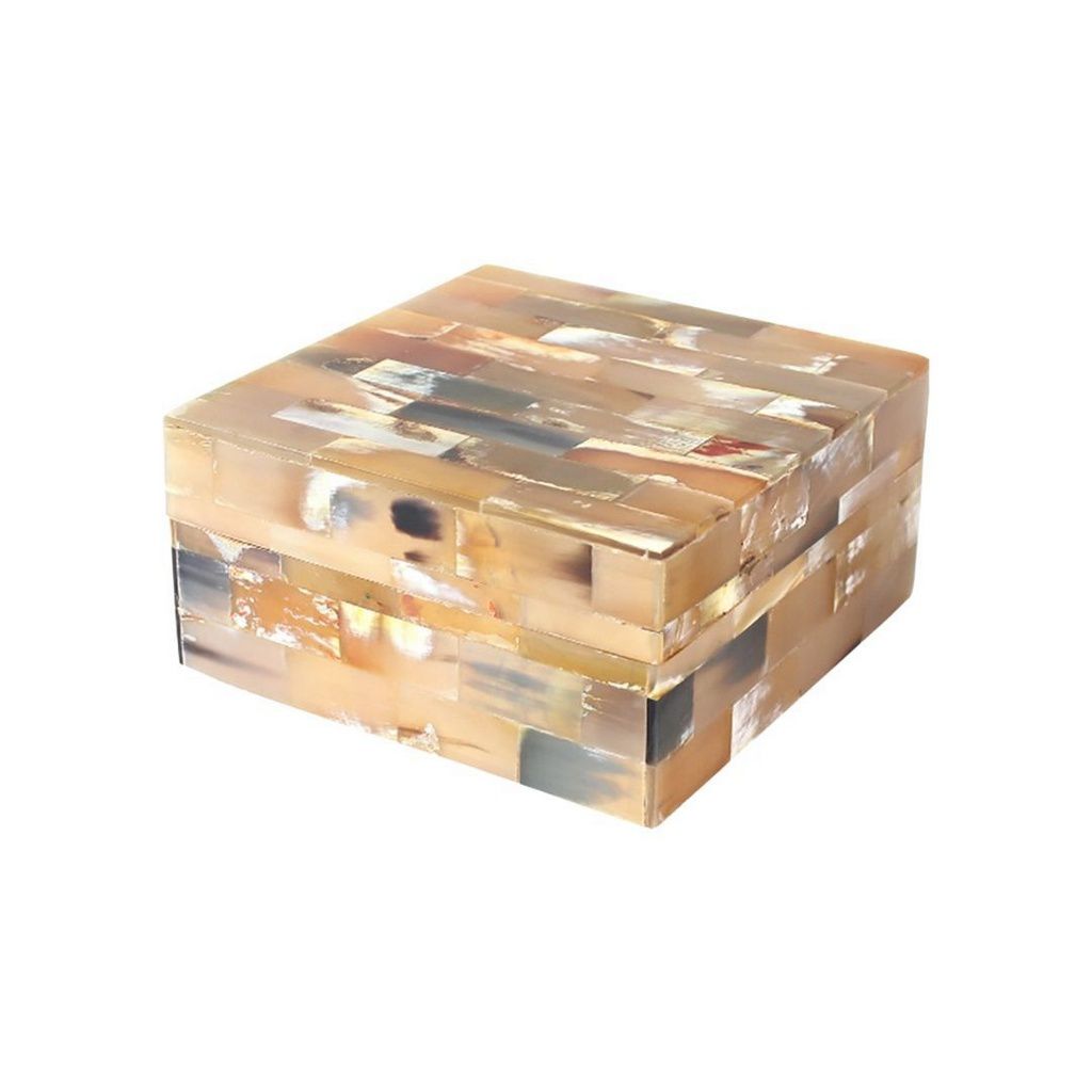 “Caixa Porta Joias em Chifre M”, é uma peça decorativa linda, delicada e com mosaico em formado quadrado toda construída de chifre de búfalo onde a diferenciação e charme consegue passar toda a bagagem técnica do artesão indiano.