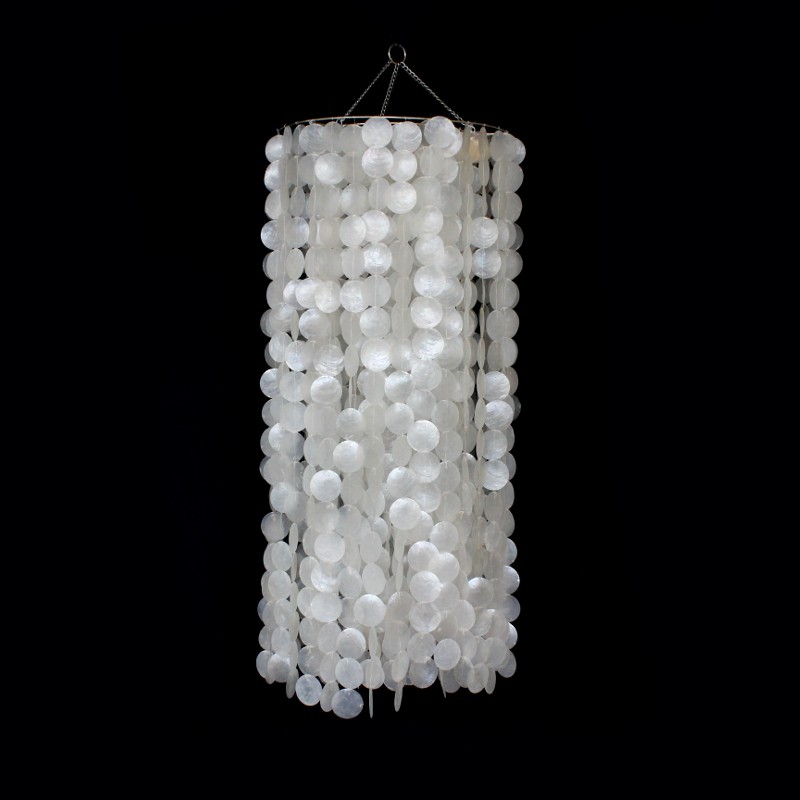 “Chandelier de Madrepérola 40 Natural em Cascata”, produzido artesanalmente com madrepérolas naturais de alta qualidade no acabamento que agrega imponência, sofisticação e elegância do lustre, sendo perfeito na decoração inconfundível do ambiente.