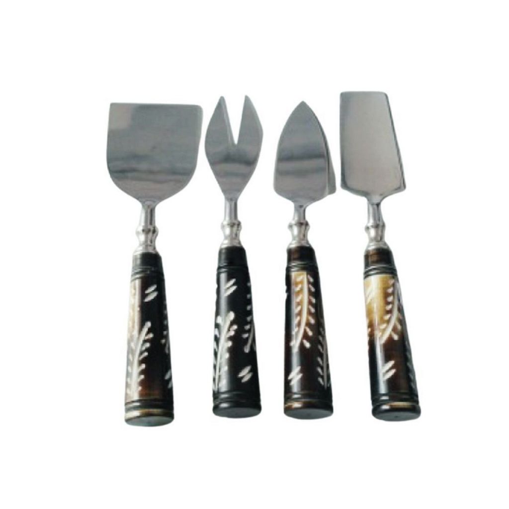 “Kit para Queijo em Inox e Chifre 4 Peças”, ideal para quem tem muito bom gosto, apreciadores de queijos no dia a dia ou em ocasiões especiais, além de complementar a decoração da mesa com sofisticação. Com design moderno, conta com a lâmina em aço inox afiada, e cabo em chifre de búfalo que retratando a beleza única do material, facilitando o corte de queijos mais duros, macios e cremosos. Produzido artesanalmente com acabamento que agrega sutileza, charme e beleza à mesa.