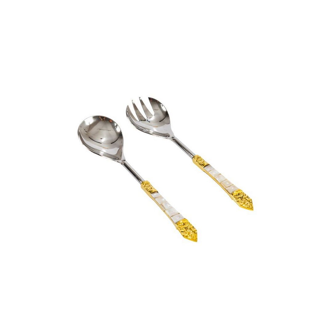 “Conjunto para Salada em Bronze e Madrepérola”, importado e com acabamento perfeito, excelente para complementar a decoração do prato de salada, dando aquele ar de sofisticação, elegância e glamour. Conta com o brilho, a elegância e beleza do bronze e o lindo acabamento da madrepérola, onde o artesão com toda sua técnica elabora um design com muita sofisticação no cabo da peça.