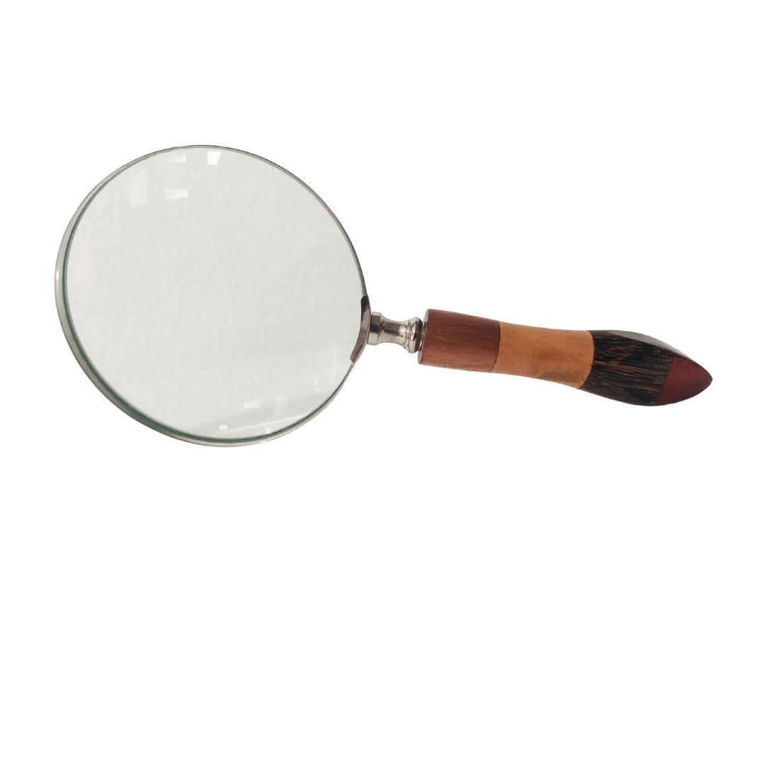 “Lupa de Mão em Inox e Madeira”, peça fabricada em inox e cabo em madeira de 3 cores. Ideal para compor a decoração do ambiente dando um toque de exclusividade, requinte e sofisticação, o seu design único com lente redonda onde o artesão indiano transfere suas habilidades na beleza do acabamento.