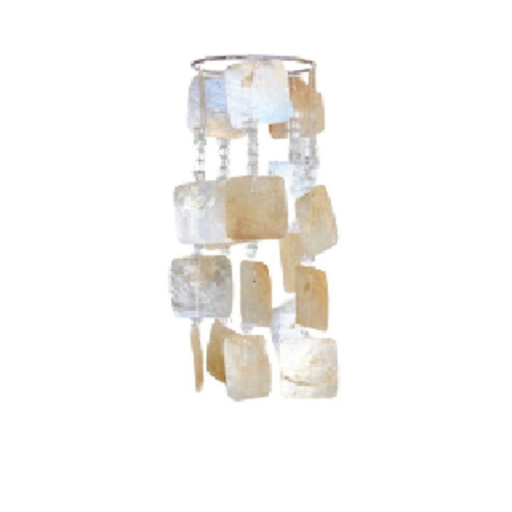 “Sino em Madrepérola Mensageiro do Vento”, com design exclusivo de 5 linhas com madrepérola em formato de chips quadrados, nas cores dourada e natural, de altíssima qualidade e beleza no acabamento. Conta com a sutileza da madrepérola, tornando-o imponente, sofisticado e elegante, um verdadeiro objeto de decoração, que se destaca em diversos estilos e tudo fica mais glamoroso. Confeccionado de forma artesanal para que o som provoque relaxamento, e não um barulho estressante.